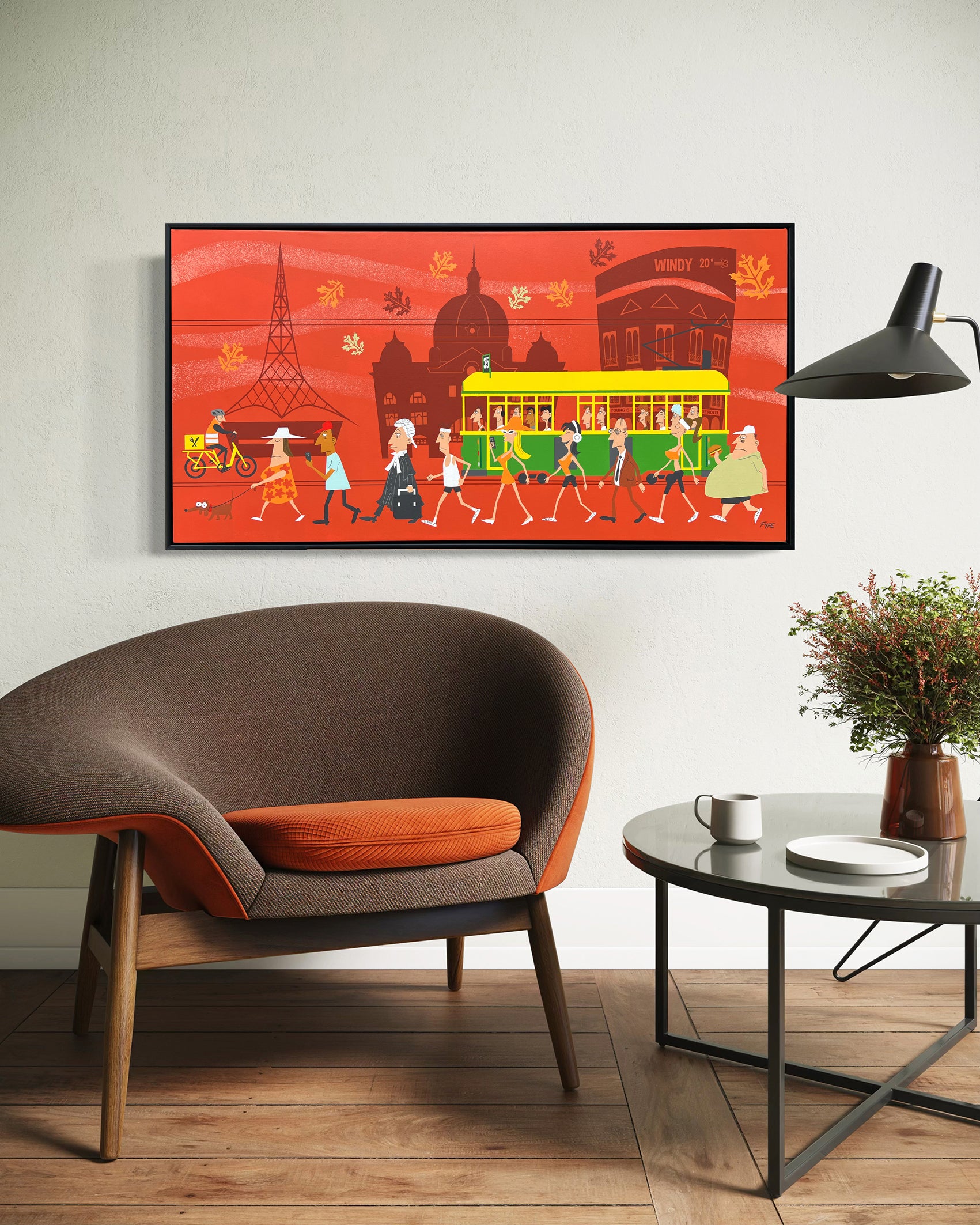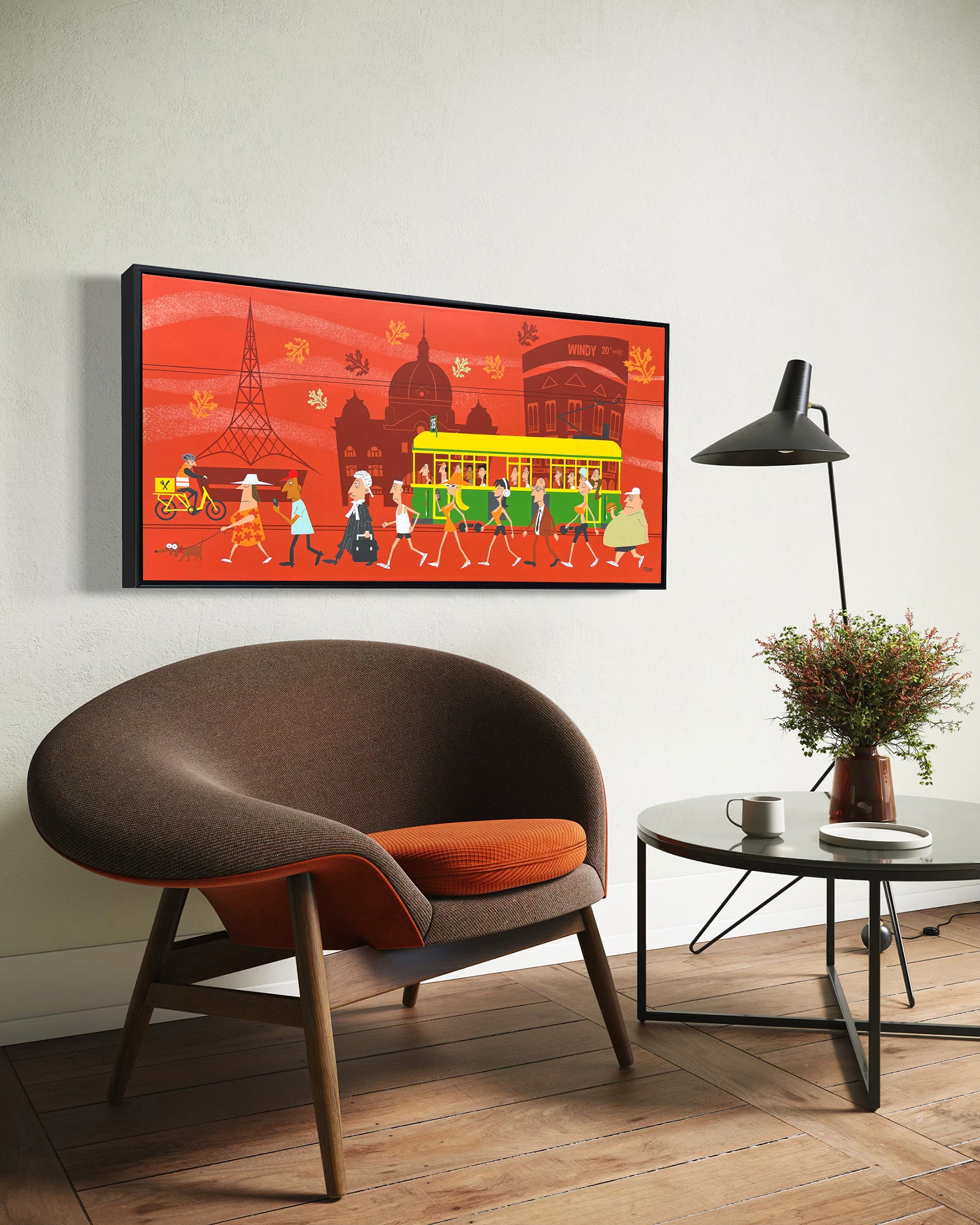 Autumn from the Melbourne Seasons series bathes the city in rich red and golden tones.