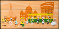 Locals stroll past iconic landmarks and the City Circle tram, dressed for long days and famous summer sports like cricket and the Australian Open.